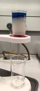 Рис.6. Демонстрация рабочего действия фильтровального порошка PLEX® DryAdsorb на примере очистки окрашенного раствора ПХЭ синтетическим синим красителем